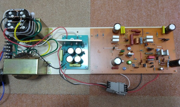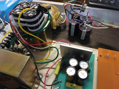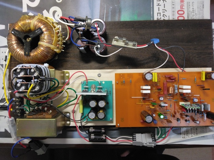 とりあえずドライバー段までの確認を行い、抵抗値等の調整を行います。 そのために金田式No118の電源部からトランスを拝借しています。