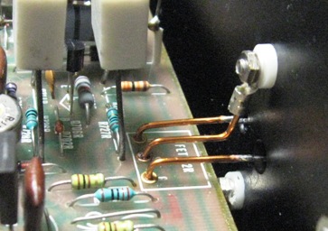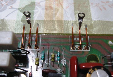 FETの短い足と基板の接続は1.2mmのポリエステル銅線で行います。