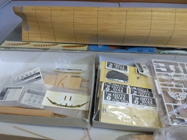 | 商品が到着したので状態確認を行います。 先端部が破損していますが修復は簡単でしょう。 パーツリストと図面を基に部品の確認を行います。 幸いほかのパーツはすべて揃っています。 船体の組み立ても上手くなされており良いものを手に入れることができました。 木製キットの醍醐味は船体の組み立てなのかもしれませんが、それは前回で十分堪能したので十分です。 1/80ではホワイトメタルが多かったのですがこの1/100のキットではエッチングパーツや真鍮部品が増えているようで、こちらの方が少し新しいのかもしれません。 しかし、箱の古さを考えると相当前の製品かと思います。 1/80と1/100の違いですが中身はほとんど一緒ですが、やはり大きさがかなり違います。 1/80が圧倒的な存在感があります。 前回の1/80では試行錯誤しながら製作を行っていましたが、今回は仕上がりをさらに追求していきたいと思っています。 またしばらく楽しめそうです。 |